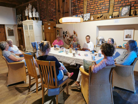 Du kannst dir alles anschauen und ohne Druck dich für deinen Schritt entscheiden. Vielleicht sind da schon Menschen, die du kennst aus deiner Nachbarschaft, die auch gerne sich treffen und besprechen möchten. Vielleicht liest jemand euch vor und du stopfst dabei die liegengebliebenen Lieblingsstücke.